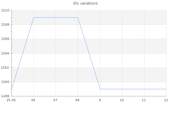 Elo no rounded:1499 Rd ( Small rd indicates a reliable elo ) : 350 Elo max :0 Elo max this year :0 Moves played :0 Country:Brazil