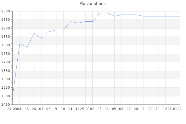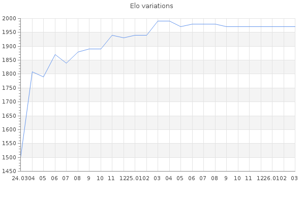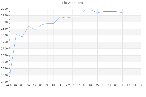 Elo no rounded:1974.7 Rd ( Small rd indicates a reliable elo ) : 98 Elo max :1990 Elo max this year :1990 Moves played :940 Country:Belgium