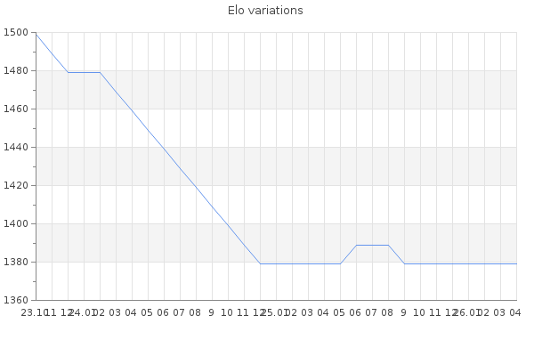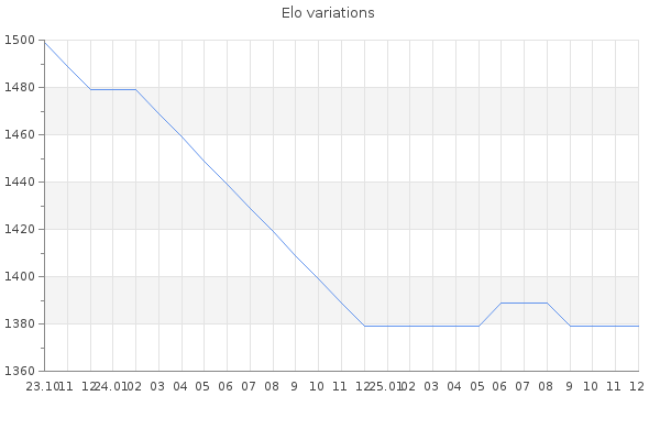 Elo no rounded:1379 Rd ( Small rd indicates a reliable elo ) : 350 Elo max :0 Elo max this year :0 Moves played :0 Country:South Korea