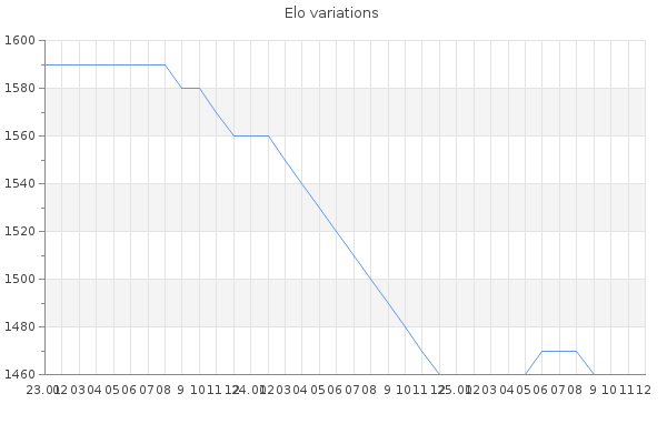 Elo no rounded:1458.7 Rd ( Small rd indicates a reliable elo ) : 85 Elo max :1900 Elo max this year :1900 Moves played :1370 Country:Sweden