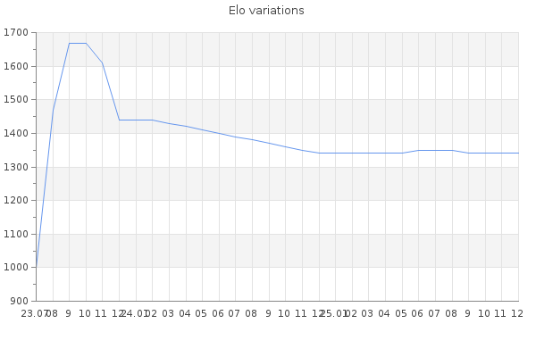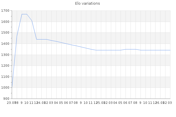 Elo no rounded:1339.6 Rd ( Small rd indicates a reliable elo ) : 147 Elo max :1450 Elo max this year :1450 Moves played :219 Country:other Country