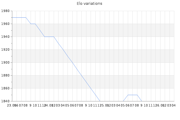 Elo no rounded:1843.9 Rd ( Small rd indicates a reliable elo ) : 102 Elo max :2200 Elo max this year :2200 Moves played :1327 Country:Spain