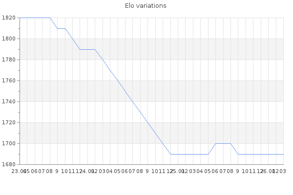 Elo no rounded:1693.3 Rd ( Small rd indicates a reliable elo ) : 106 Elo max :2100 Elo max this year :2100 Moves played :1486 Country:Spain