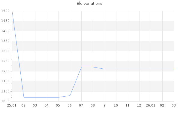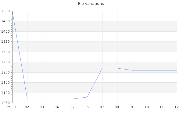 Elo no rounded:1212 Rd ( Small rd indicates a reliable elo ) : 121 Elo max :1320 Elo max this year :1320 Moves played :190 Country:United States of America