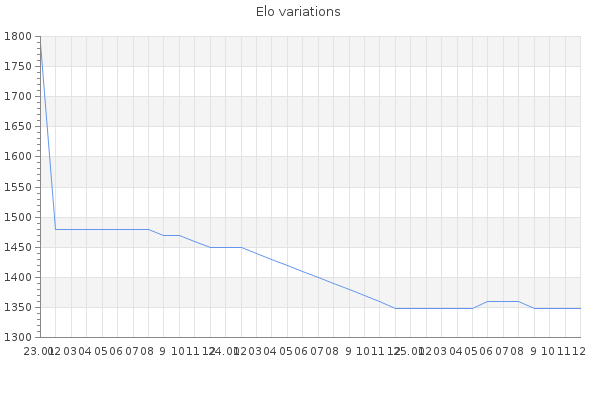 Elo no rounded:1350.3 Rd ( Small rd indicates a reliable elo ) : 168 Elo max :0 Elo max this year :0 Moves played :74 Country:other Country