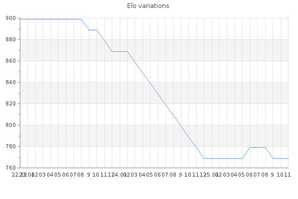 Elo no rounded:766.7 Rd ( Small rd indicates a reliable elo ) : 251 Elo max :0 Elo max this year :0 Moves played :7 Country:Romania