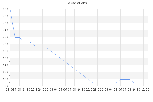 Elo no rounded:1590.3 Rd ( Small rd indicates a reliable elo ) : 281 Elo max :0 Elo max this year :0 Moves played :4 Country:Malta