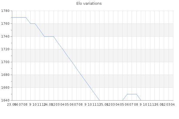 Elo no rounded:1642.2 Rd ( Small rd indicates a reliable elo ) : 80 Elo max :2950 Elo max this year :2950 Moves played :1074 Country:France