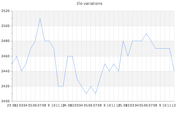 Elo no rounded:2439.2 Rd ( Small rd indicates a reliable elo ) : 86 Elo max :2510 Elo max this year :2510 Moves played :5868 Country:Belgium