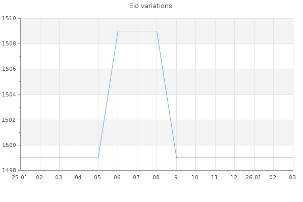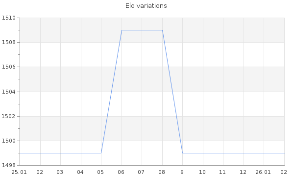 Elo no rounded:1499 Rd ( Small rd indicates a reliable elo ) : 350 Elo max :0 Elo max this year :0 Moves played :0 Country:Germany