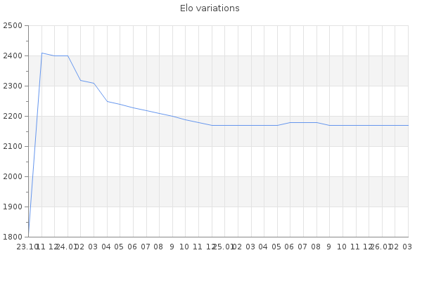 Elo no rounded:2164.5 Rd ( Small rd indicates a reliable elo ) : 198 Elo max :0 Elo max this year :0 Moves played :140 Country:San Marino