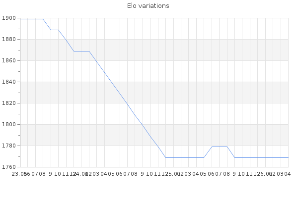 Elo no rounded:1764.3 Rd ( Small rd indicates a reliable elo ) : 305 Elo max :2190 Elo max this year :2190 Moves played :3793 Country:Philippines