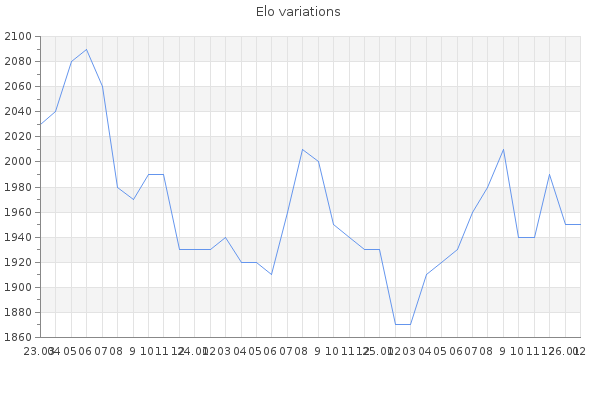 Elo no rounded:1947.6 Rd ( Small rd indicates a reliable elo ) : 88 Elo max :2180 Elo max this year :2180 Moves played :7252 Country:Trinidad and Tobago