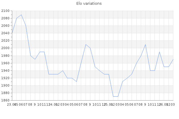 Elo no rounded:1965.4 Rd ( Small rd indicates a reliable elo ) : 93 Elo max :2180 Elo max this year :2180 Moves played :7379 Country:Trinidad and Tobago