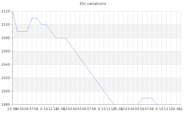 Elo no rounded:1978.5 Rd ( Small rd indicates a reliable elo ) : 109 Elo max :2410 Elo max this year :2410 Moves played :5378 Country:Uruguay