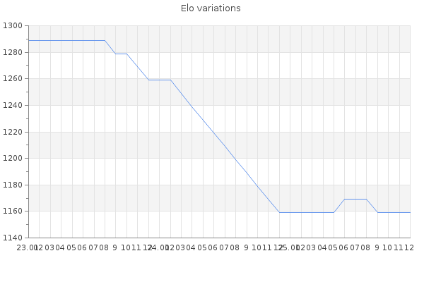 Elo no rounded:1157.8 Rd ( Small rd indicates a reliable elo ) : 321 Elo max :0 Elo max this year :0 Moves played :2 Country:Egypt