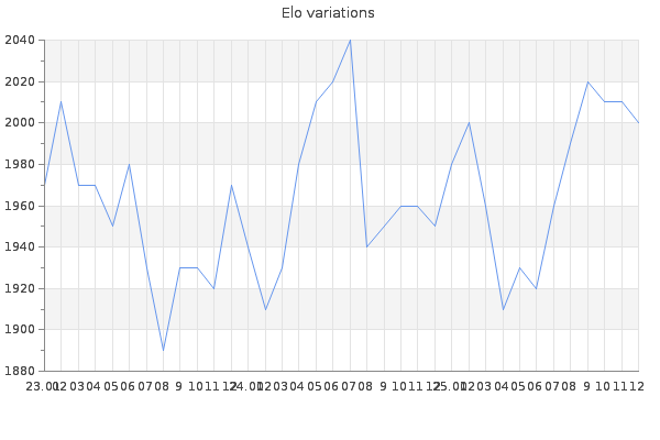 Elo no rounded:1996.8 Rd ( Small rd indicates a reliable elo ) : 89 Fast Elo :1429 Fast Rd : 294 Elo max :2270 Elo max this year :2270 Moves played :43840 Country:Turkey