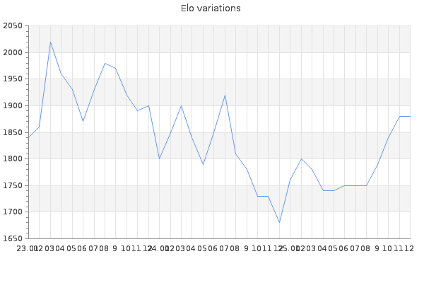 Elo no rounded:1877 Rd ( Small rd indicates a reliable elo ) : 83 Elo max :2110 Elo max this year :2110 Moves played :92178 Country:Argentina