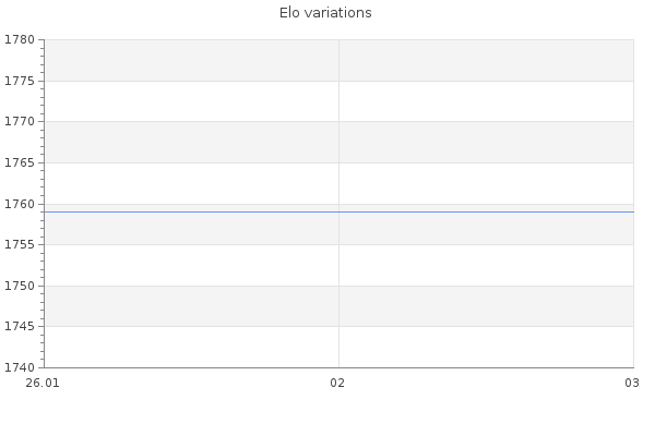 Elo no rounded:1754.6 Rd ( Small rd indicates a reliable elo ) : 309 Elo max :0 Elo max this year :0 Moves played :8 Country:Kazakhstan