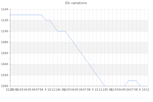 Elo no rounded:998.2 Rd ( Small rd indicates a reliable elo ) : 139 Elo max :1250 Elo max this year :1250 Moves played :92 Country:other Country