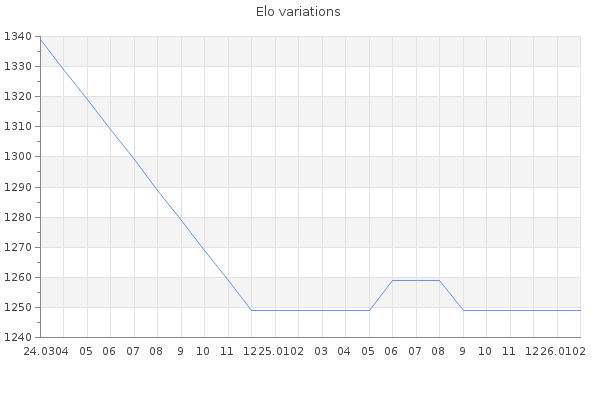 Elo no rounded:1250 Rd ( Small rd indicates a reliable elo ) : 252 Elo max :0 Elo max this year :0 Moves played :3 Country:Turkey