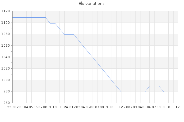 Elo no rounded:978.8 Rd ( Small rd indicates a reliable elo ) : 184 Elo max :0 Elo max this year :0 Moves played :39 Country:Lebanon