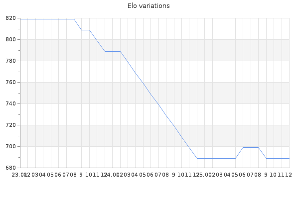 Elo no rounded:690 Rd ( Small rd indicates a reliable elo ) : 263 Elo max :0 Elo max this year :0 Moves played :128 Country:Hungary