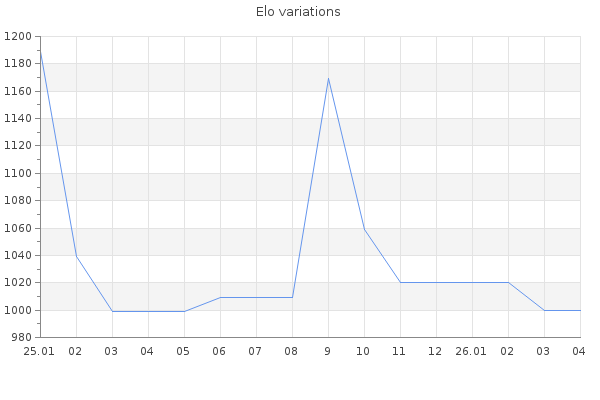 Elo no rounded:1000 Rd ( Small rd indicates a reliable elo ) : 146 Elo max :1050 Elo max this year :1050 Moves played :131 Country:Brazil