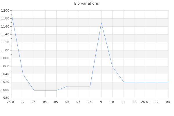 Elo no rounded:1017 Rd ( Small rd indicates a reliable elo ) : 141 Elo max :1050 Elo max this year :1050 Moves played :131 Country:Brazil