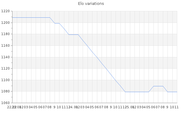 Elo no rounded:1082.3 Rd ( Small rd indicates a reliable elo ) : 227 Elo max :0 Elo max this year :0 Moves played :7 Country:Turkey