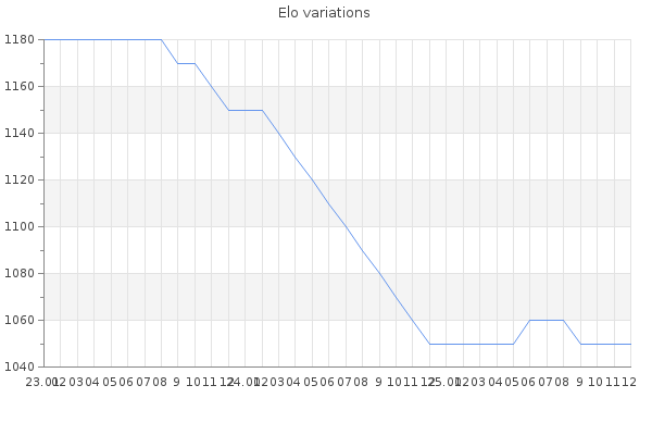 Elo no rounded:1050.2 Rd ( Small rd indicates a reliable elo ) : 102 Elo max :1350 Elo max this year :1350 Moves played :334 Country:Egypt