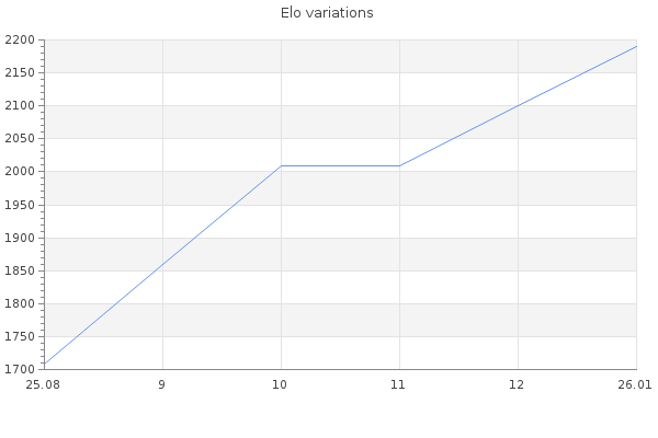 Elo no rounded:2187.8 Rd ( Small rd indicates a reliable elo ) : 128 Elo max :2190 Elo max this year :2190 Moves played :271 Country:Germany