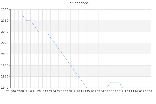 Elo no rounded:1942 Rd ( Small rd indicates a reliable elo ) : 91 Elo max :2250 Elo max this year :2250 Moves played :1015 Country:Canada