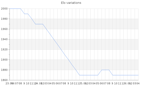 Elo no rounded:1873.8 Rd ( Small rd indicates a reliable elo ) : 89 Elo max :2210 Elo max this year :2210 Moves played :9798 Country:Canada
