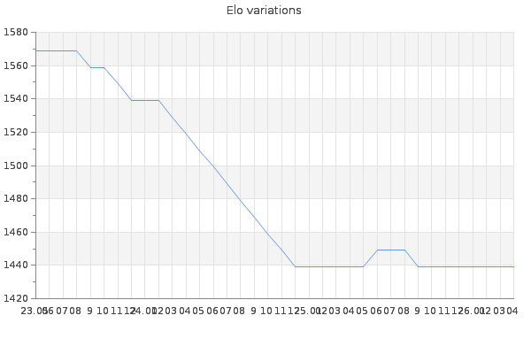 Elo no rounded:1440 Rd ( Small rd indicates a reliable elo ) : 204 Elo max :1750 Elo max this year :1750 Moves played :427 Country:other Country