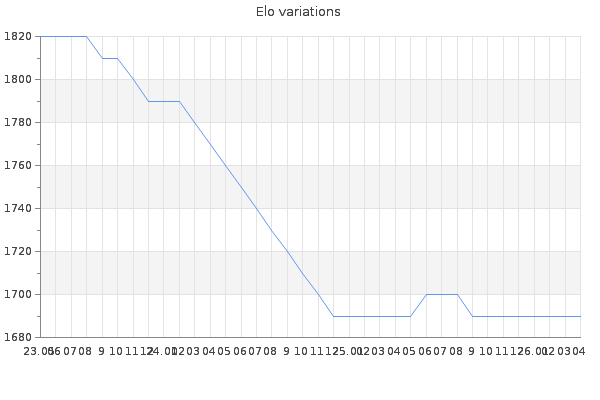 Elo no rounded:1686.9 Rd ( Small rd indicates a reliable elo ) : 117 Fast Elo :1859 Fast Rd : 165 Elo max :2090 Elo max this year :2090 Moves played :544 Country:Italy