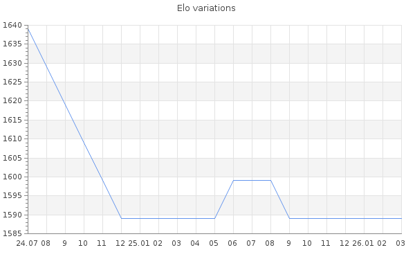 Elo no rounded:1586.3 Rd ( Small rd indicates a reliable elo ) : 230 Elo max :0 Elo max this year :0 Moves played :71 Country:Denmark
