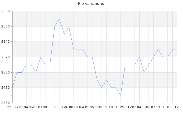 Elo no rounded:2533.8 Rd ( Small rd indicates a reliable elo ) : 119 Elo max :2750 Elo max this year :2750 Moves played :7891 Country:Romania