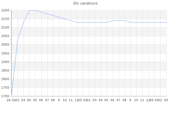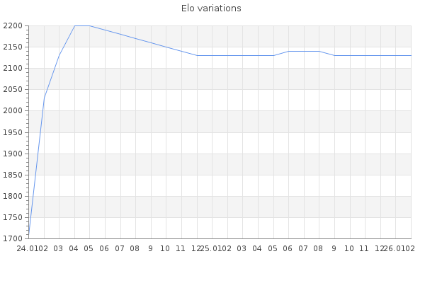 Elo no rounded:2126 Rd ( Small rd indicates a reliable elo ) : 102 Elo max :2210 Elo max this year :2210 Moves played :536 Country:Netherlands