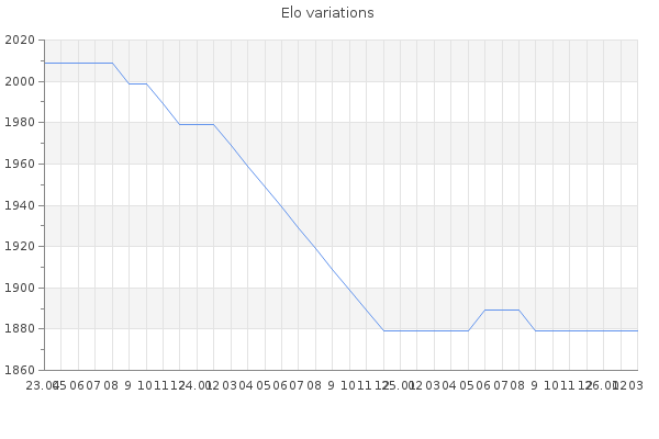 Elo no rounded:1878 Rd ( Small rd indicates a reliable elo ) : 188 Elo max :2110 Elo max this year :2110 Moves played :971 Country:Portugal