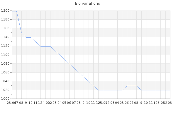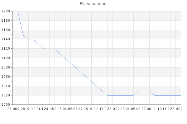 Elo no rounded:1020.3 Rd ( Small rd indicates a reliable elo ) : 307 Elo max :0 Elo max this year :0 Moves played :4 Country:Egypt